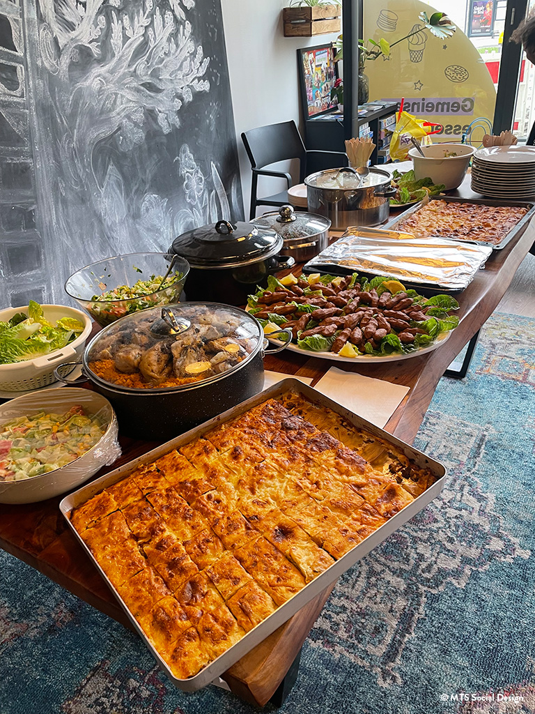 In unserem Quartier kommen Menschen mit unterschiedlichsten Migrationsgeschichten zusammen. Um diese Vielfalt sichtbar zu machen und zu stärken, organisieren BENN Hakenfelde und „heimaten“ bei berlinovo regelmäßig Kulturabende – jeder Abend eine Reise in eine andere Kultur. Am 13.04. fand unser kurdischer Abend statt, der in diesem Jahr den Auftakt unserer Veranstaltungsreihe bildete. Wir haben uns sehr gefreut, dass er einen so gelungenen und lebendigen Start ermöglicht hat. Gemeinsam haben unsere Nachbarinnen und Nachbarn gekocht und gelacht – und am Ende ein vielfältiges Buffet mit köstlichen Gerichten aus der kurdischen Küche geteilt! Ein ganz besonderer Dank geht an Frau Azize Çiçek und unsere engagierten Nachbarinnen, die mit viel Herzblut ein wunderbares Buffet gezaubert haben! Der Abend klang mit traditionellen kurdischen Tänzen aus, die alle mitgerissen haben – ganz gleich, ob sie die Kultur schon kannten oder sie an diesem Abend zum ersten Mal erleben durften. Es war ein lebendiger, farbenfroher und verbindender Moment für unsere Gemeinschaft. Wir freuen uns schon jetzt auf die nächsten Kulturabende in Hakenfelde – und auf viele weitere gemeinsame Erlebnisse!